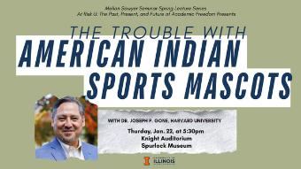 Knight Auditorium, Spurlock MuseumIndian sports mascots—including Chief Illiniwek at the University of Illinois—are harmful racial stereotypes. First, the “Indians” of sports culture in America are portrayed inaccurately. Second, the kinds of inaccurate portrayals of the “Indians” of sports culture in America are not particularly novel, inspired, or original, but instead follow enduring historical modes of representing American Indians as a primitive racial group in the United States. Third, as stereotyped portrayals of a primitive racial group, the “Indians” of American sports culture undermine, circumscribe, or overwhelm the efforts of some five million modern-day citizens of federally recognized Tribal Nations in our efforts to recover from longstanding dispossession and marginality in our own homelands. In this public exchange, I will review these arguments, recount my own personal experience with advocating for mascot removal at UIUC, and consider historical university efforts to manage risk associated with sponsoring a popular—albeit harmful—racial stereotype.