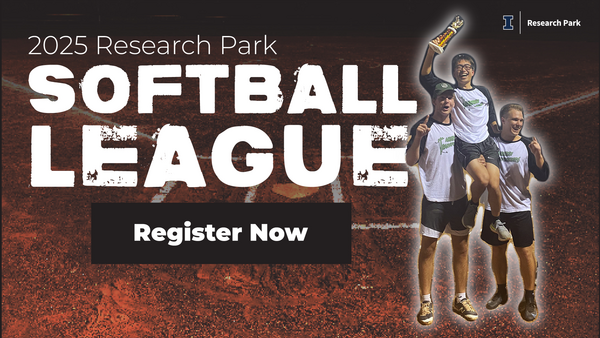 Come out and support your company's team at the 2025 Research Park Summer Softball League. Research Park teams and individuals registered in May will play games on Monday evenings from June 2 to July 21 at the University of Illinois Complex Fields in Champaign. Learn more on the Research Park website.