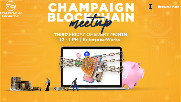 Held on the third Friday of the month, 12:00 to 1:00 PM. For more information and to RSVP, please visit the Champaign Blockchain Meetup page.