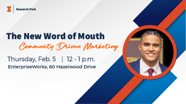 Join us for The New Word of Mouth: Community-Driven Marketing for Local Businesses with Ayden Owens, Founder of DapUp on Thursday, February 5 from 12 to 1 p.m. All Research Park events are free; however, registration is required to ensure that we have adequate seating and food for all participants:
