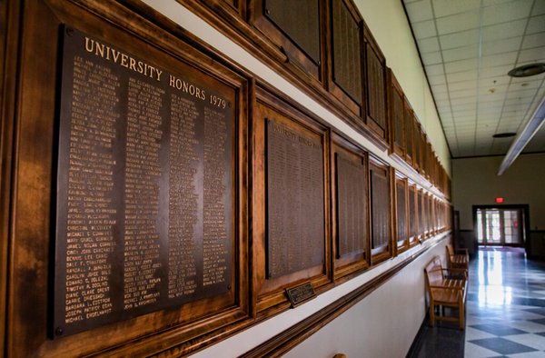 The Main Library first floor north-south corridor will be open from 1 p.m. to 4 p.m. on the Saturday and Sunday of Commencement weekend for photo opportunities with the Bronze Tablets.
