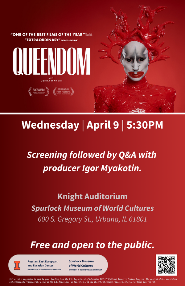 Join us for a free screening of Queendom (2023), followed by a discussion with producer Igor Myakotin. This documentary follows Jenna, a queer artist in Russia, who stages radical public performances to challenge perceptions of beauty and queerness while protesting government oppression. Myakotin, an Emmy-nominated filmmaker, brings this powerful story to the screen.