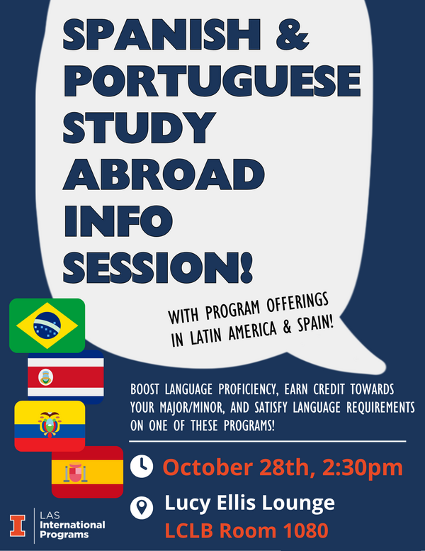 Hosted by LAS International Programs and the Spanish Department, this session will highlight a variety of Spanish language study abroad programs and help you explore options that fit your academic goals. Learn how to find the right program for your major or minor and take the first step toward your international experience.