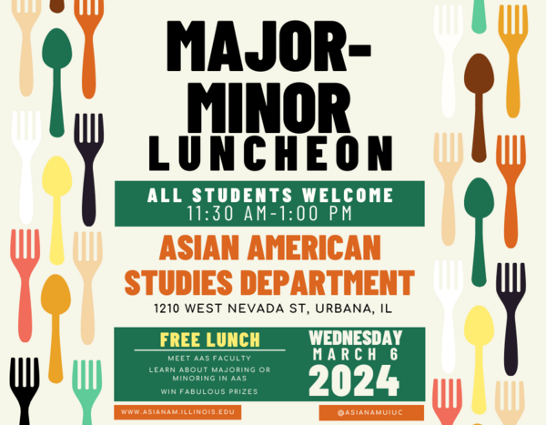 Interested in a free lunch? Stop by the Department of Asian American Studies on Wednesday, March 6 at 11:30 for our Spring Major-Minor Luncheon.