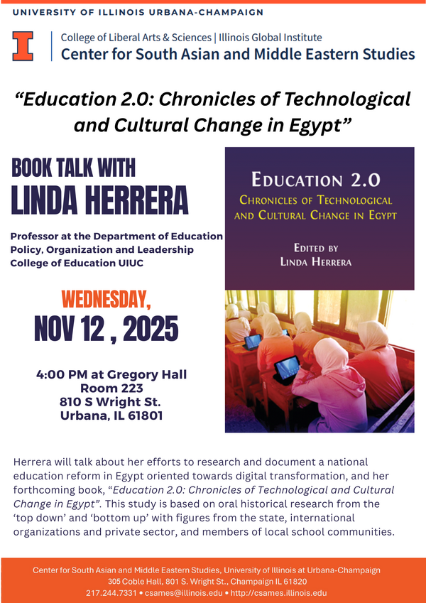 Herrera will talk about her efforts to research and document a national education reform in Egypt oriented towards digital transformation, and her forthcoming book, Education 2.0, Chronicles of Technological and Cultural Change in Egypt. This study is based on oral historical research from the ‘top down’ and ‘bottom up’ with figures from the state, international organizations and private sector, and members of local school communities.
