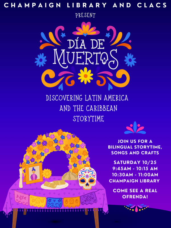 Join us for a fun morning of bilingual storytime, songs, and crafts!This Saturday’s theme is Día de Muertos , we’ll learn about this beautiful tradition and we will display a real "Ofrenda".
