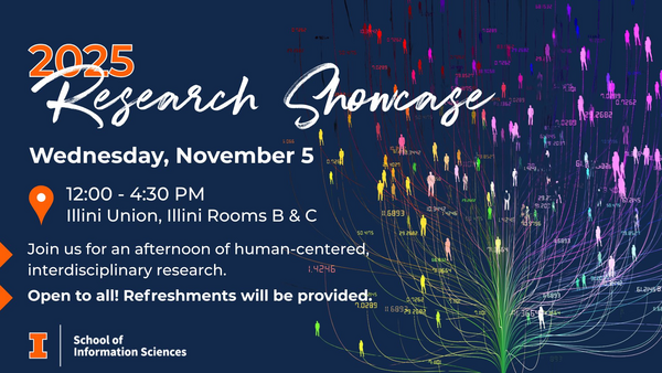 The iSchool Research Showcase shares human-centered, interdisciplinary research through a keynote speech and a series of short presentations and posters by School of Information Sciences faculty, staff, and graduate students.