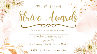 The Women’s Resources Center invites you to join us for the 7th Annual Strive Awards! Join us in celebrating Illinois students, staff, and faculty doing incredible gender equity work on our campus!