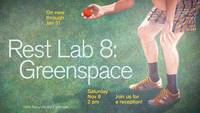 Join us to celebrate Rest Lab 8: Greenspace. You'e invited to enter a playful, restorative greenspace inside the museum. Soft artificial turf covers the gallery floor, inviting visitors to slow down and stretch out. By creating a visual and tactile interruption in typical museum spaces, Rest Lab 8: Greenspace, provides a calm, grounding atmosphere for people to gather.