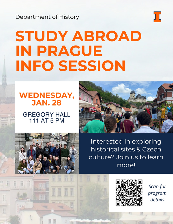5:00 pm 1/28/2026Gregory Hall 111Join Stefan Djordjevic and Marco Jaimes for an info session about HIST 354: Study Abroad in Prague.