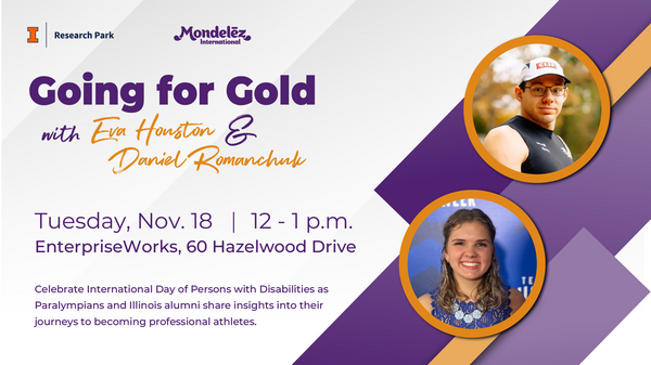 12:00 - 1:00 pmEnterpriseWorks, 60 Hazelwood DriveJoin us for the Mondelēz International Luncheon to celebrate the upcoming International Day Of Persons With Disabilities. We are excited to host Paralympians and Illinois alumni, Daniel Romanchuk & Eva Houston on Tuesday, November 18 from 12 to 1 p.m. at EnterpriseWorks.
